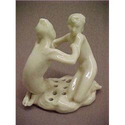 Rookwood double figural flower frog, impressed mark on bottom, dated 1917, 2338 P, "Original model by Chester Beach", hairline crack on bottom