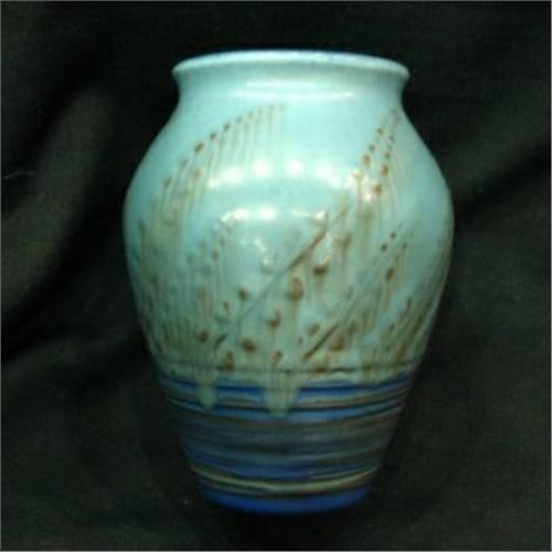Rookwood 6" blue decorated matt. Shape #915E. Decorater is Elizabeth Barett. Exceptionally nice coloring around base. Excelent condition,1927.