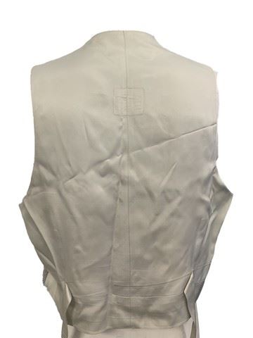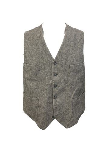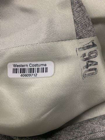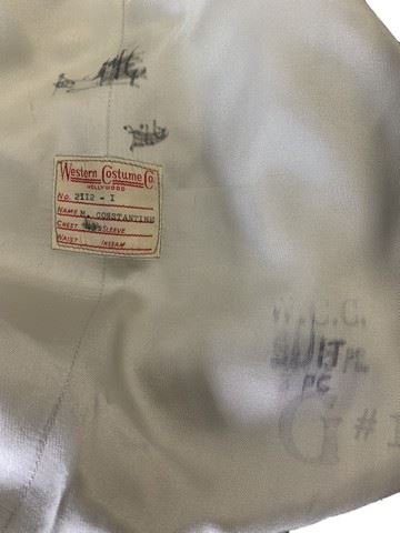 Room 222 (1969 TV) Michael Constatine grey houndstooth button front vest. Western Costume Co vintage label sewn inside the collar with M. Constatine, no. 2112-I, chest 43 1/2.Western Costume inventory bar code label also in the right inside shoulder with a stamp that reads "1940". "WCC G#16 also stamped inside along with other marker scribbles that have been crossed out.