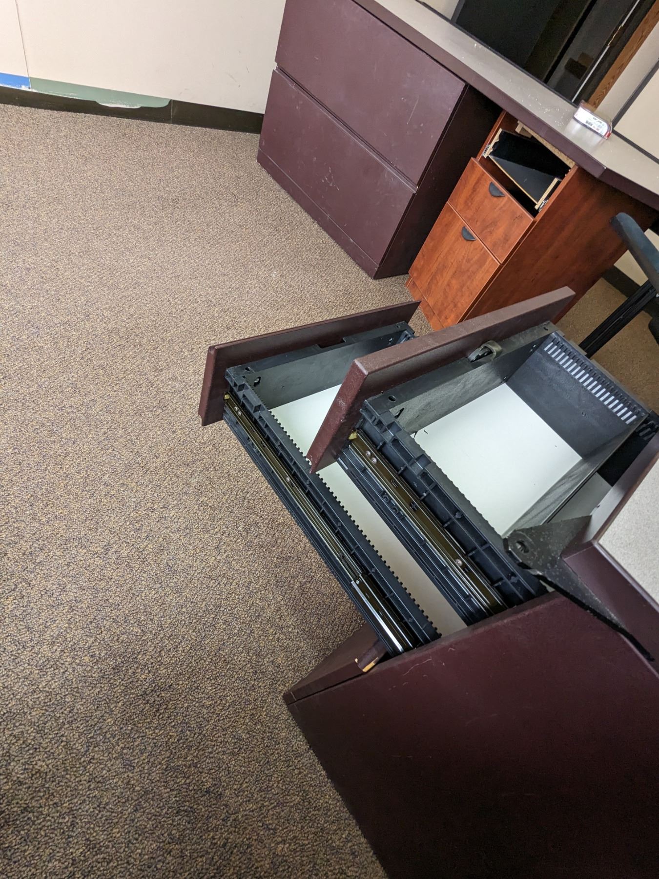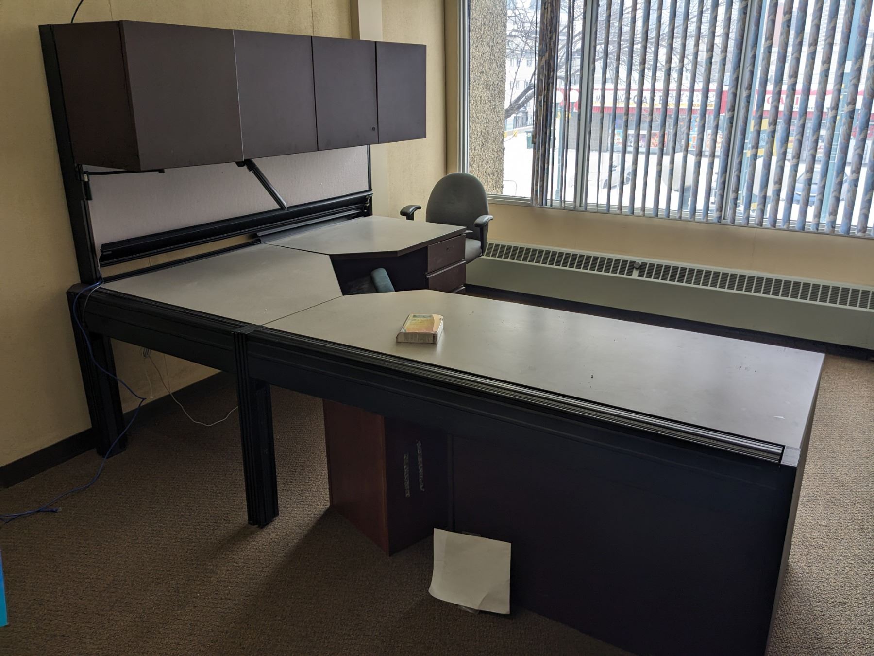 Desk - 9' x 78 ' You will need to bring your own tools and manpower to remove all won lots. Zaks Auctions and its staff will not have any tools on hand and will not be assisting with the removal, dismantling or loading of any won items. Any damage done to the premises will be charged to the winning bidder. All pickups will be by appointment only. Any walk-ins will be turned away.All items are sold as is, where is. There will be absolutely no refunds, no returns, no credit and no reimburesement for any lot. It is strongly recommended you view the lots you are interested in on Thursday March 7. This is a you bid, you buy, you remove all purchased lots, auction. Any article not removed by 5pm on March 10 will result in surplus removal fees to your invoice and payable immediately once invoice has been updated and emailed to you.