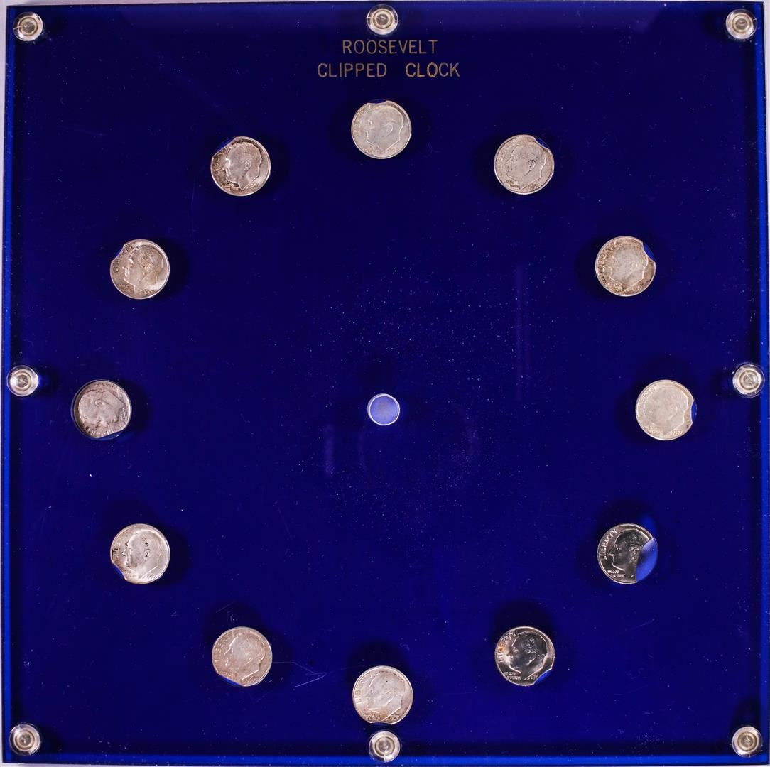 One Roosevelt Dime Clipped Planchet Coin Clock in Plastic.