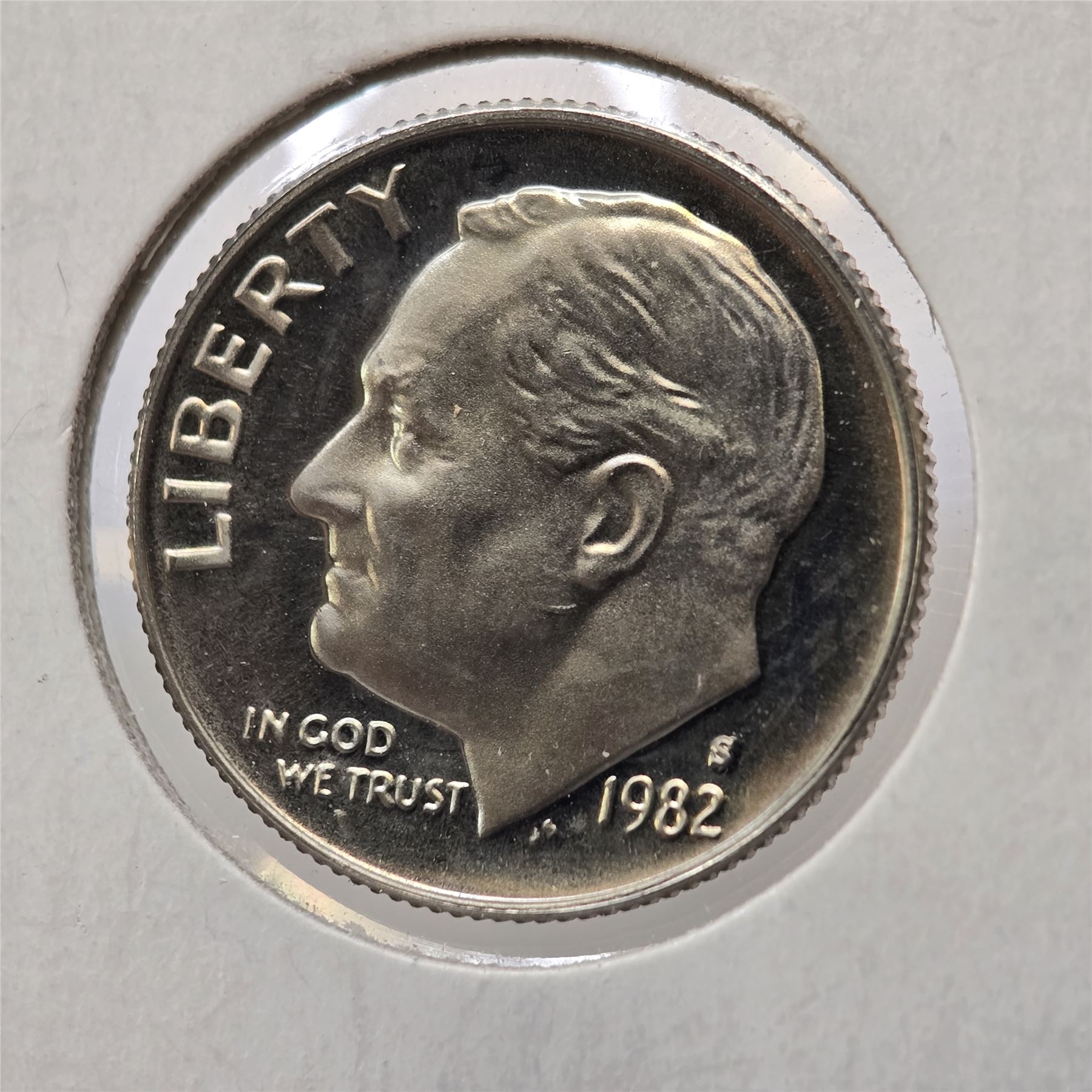 Lot of (9) Proof/Cameo Roosevelt non silver Dimes. (1) 1970-S Proof Large Date, (1)1973-S, (1) 1974, (1) 1974-D, (1) 1976-S, (2) 1980-S, (1) 1981-S, and (1) 1982-S. All look to be in Uncirculated condition