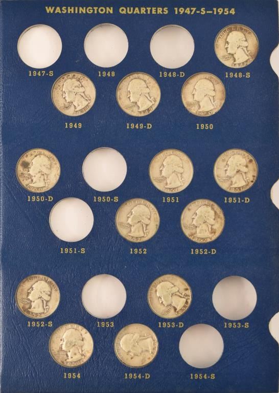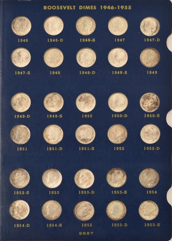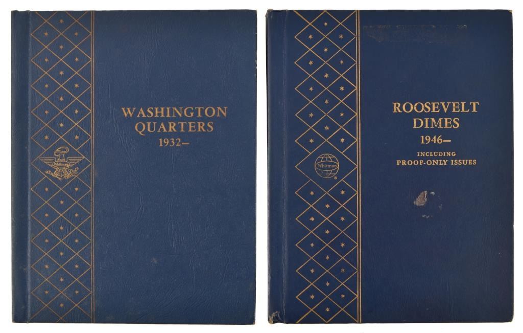 Collection book of 64 Washington Quarters (1932-1960). Collection book of 51 Roosevelt Dimes (1946-1972)