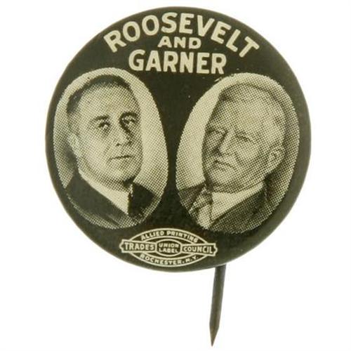 <B>Franklin Roosevelt and John Nance Garner Presidential Campaign Jugate Button, </B></I>7/8”. Fine. <B></B></I><BR><BR><b>Shipping:</b> Miscellaneous Collectibles, Smal (<a target="_blank" href="http://www.heritageauctions.com/common/shipping.php">view shipping information</a>)