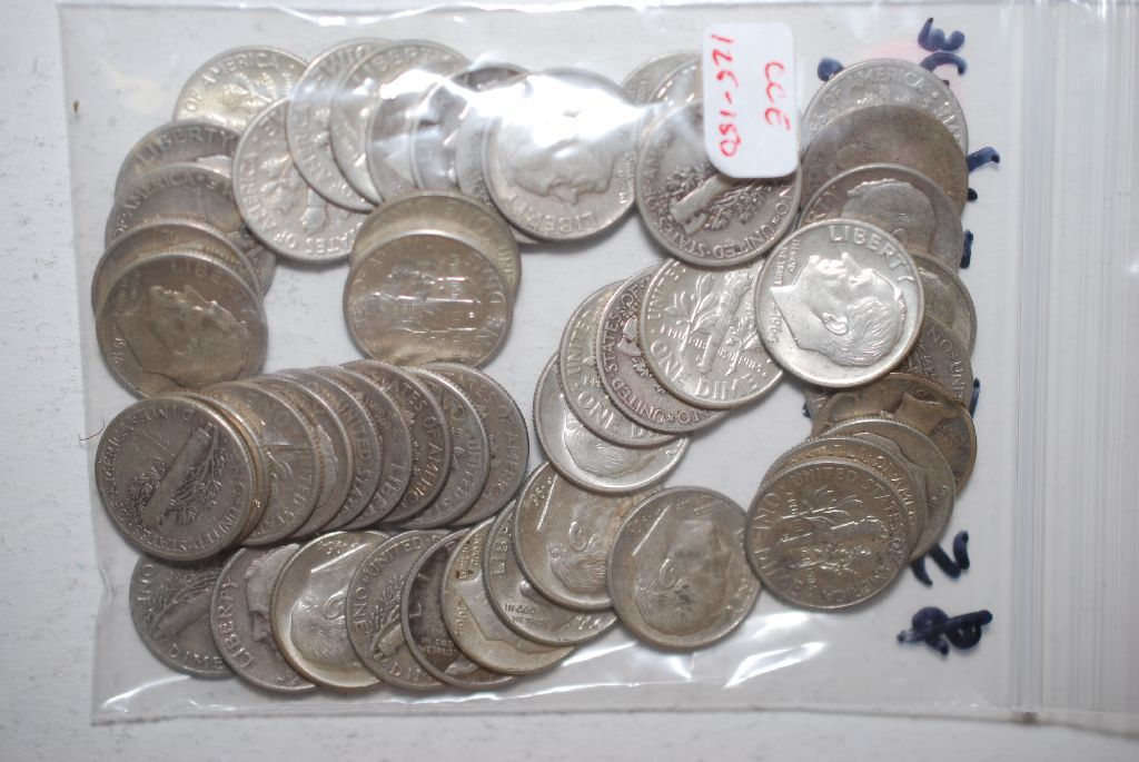 Roosevelt & Mercury Dime; Various Dates, Conditions & Denominations; Lot of 50; EST. $125-150