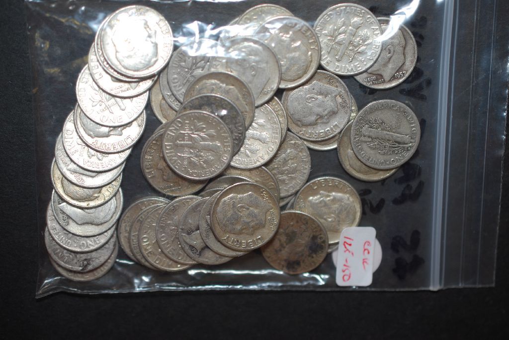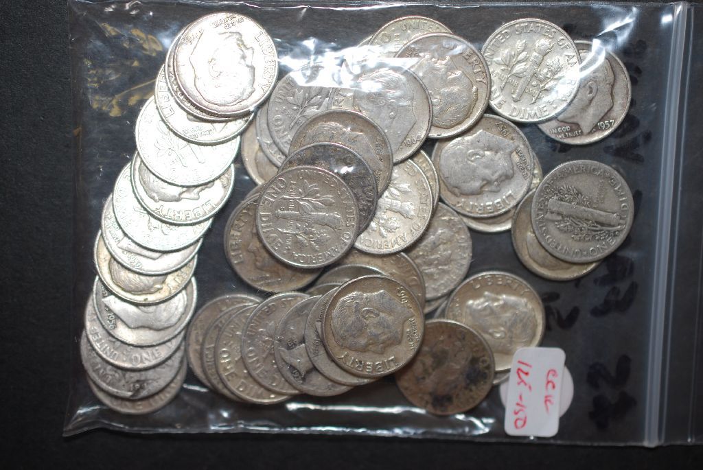 Roosevelt & Mercury Silver Dimes $5 Face Value; Various Dates, Conditions & Mint Marks; Lot of 50; EST. $125-150