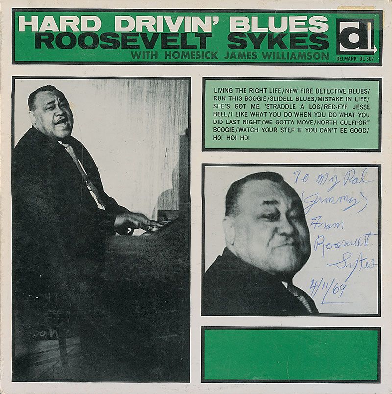 American blues musician, also known as ‘The Honeydripper,’ (1906–1983). Hard Drivin’ Blues album, signed and inscribed on the front cover in blue ballpoint and dated 1969. In overall fine condition. The record is included.