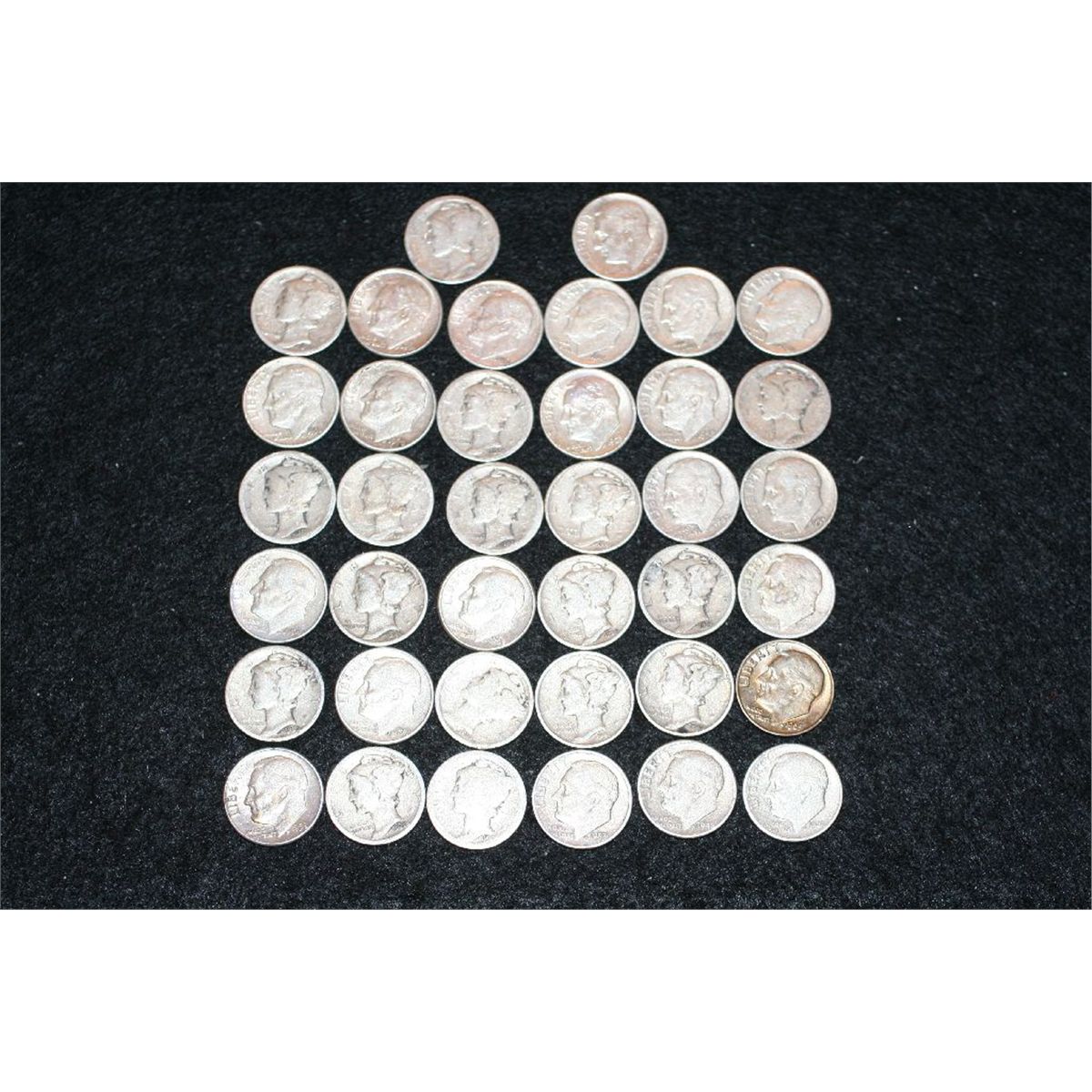 Roosevelt dimes, various dates & conditions, (21) & Mercury dimes, various dates & conditions, (17), lot of 38