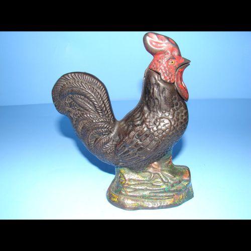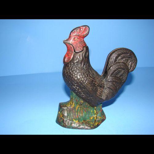 Rooster Cast Iron Mechanical Bank. Lever mechanicism is there but end of lever is snapped off. good Condition. Weight 1 1/2 lbsbr>