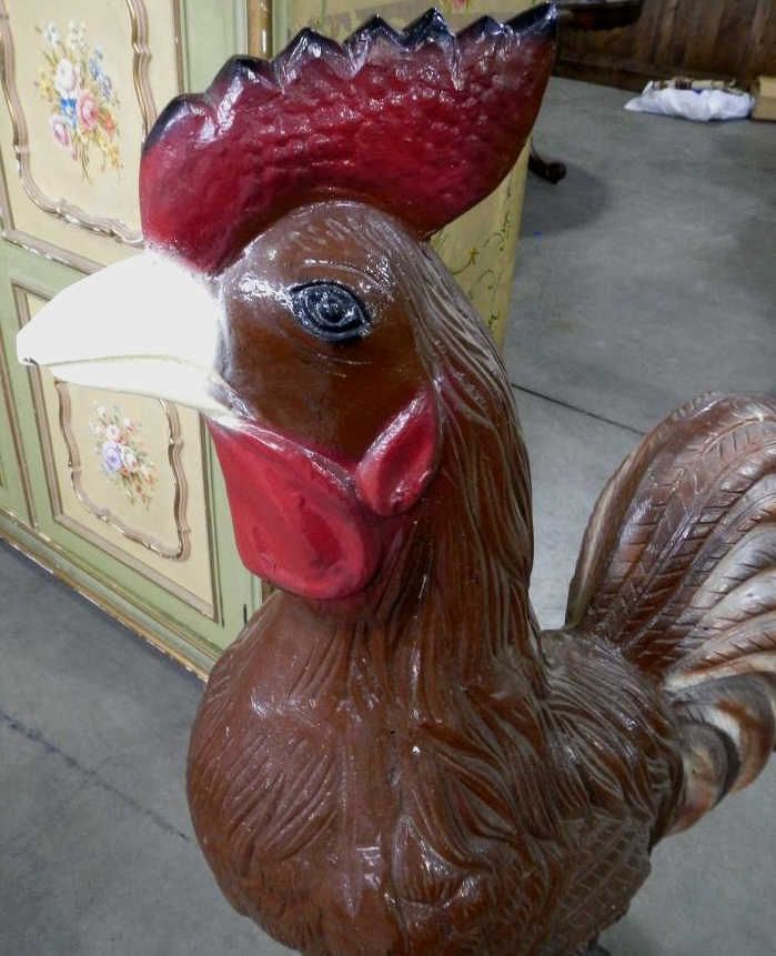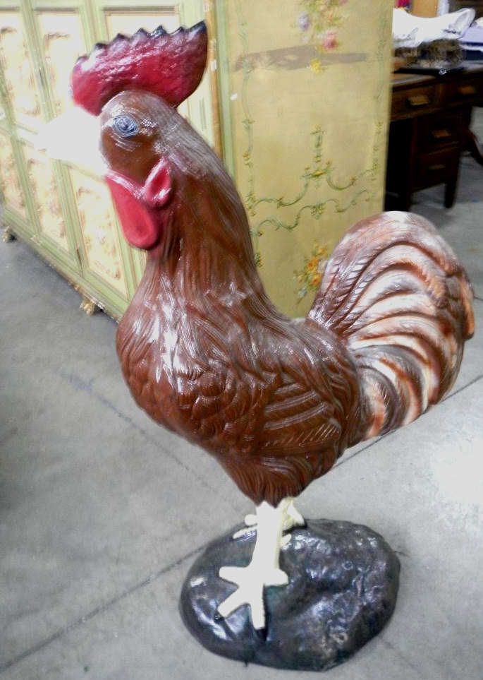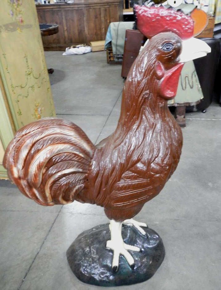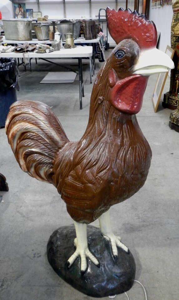 Rooster Metal Sculpture - This is a sculpture of a rooster made entirely out of aluminum hand made in Lincoln, Mt. This is a real unique piece of Folk Art that measures 47" tall.