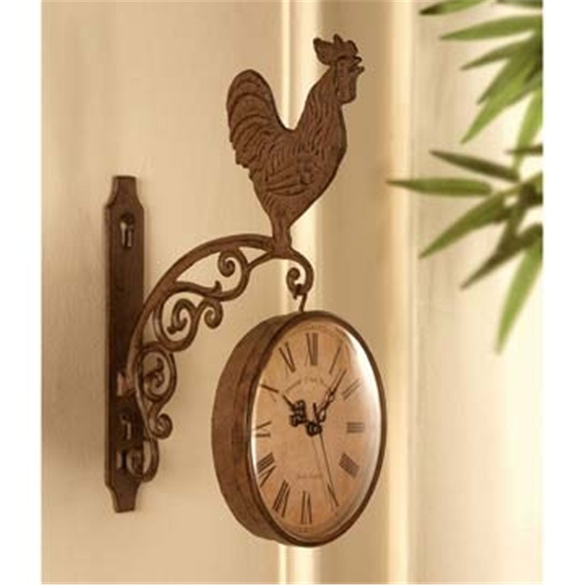 Rooster Wall Clock - 14"H 11"W 1.5"D - Aluminum & Glass - Battery Operated