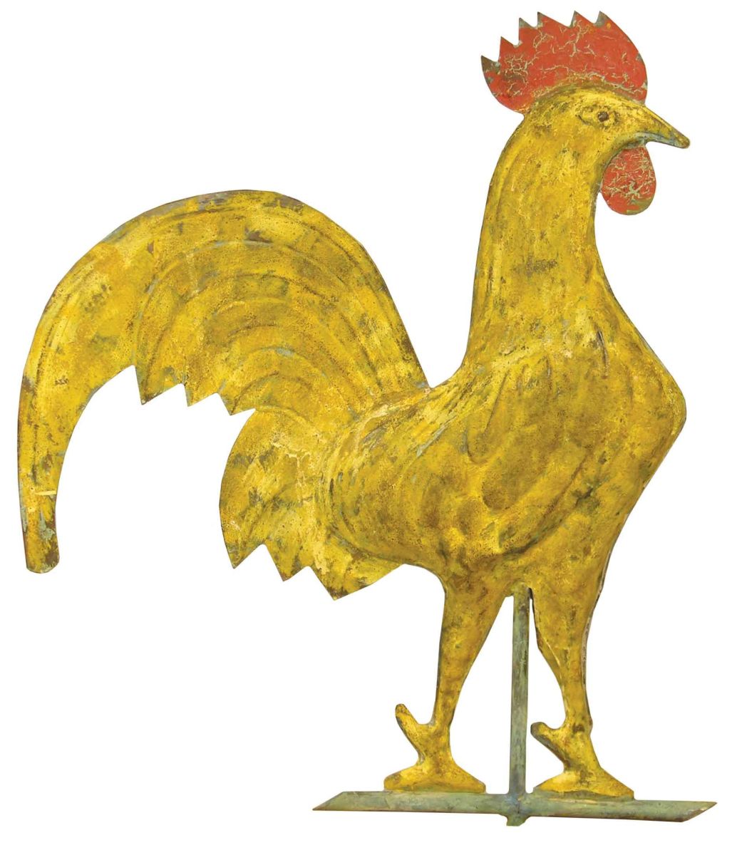 Rooster Weathervane, tin. Most of original paint intact. Guaranteed Old and Authentic. Very good condition. 16 X 19 1/2 inches.