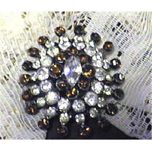 <tr><td>Title:Root Beer, Clear Rhinestone Pinwheel Brooch</td></tr>
