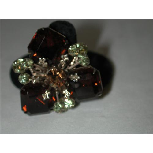 Rootbeer and yellow colored rhinestone brooch from approx. the 1950's.