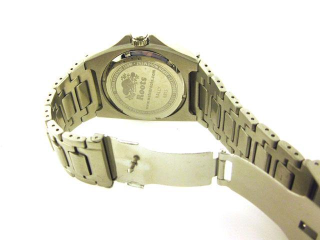 This is a Roots R815 Mens Watch with the following features: Solid stainless steel; Nickel allergy free; Spring buckle; Date function; Mercury free battery; Water resistant: 50M; Rotating ratcheted bezel; Luminous hands; and Case diameter: 41mm