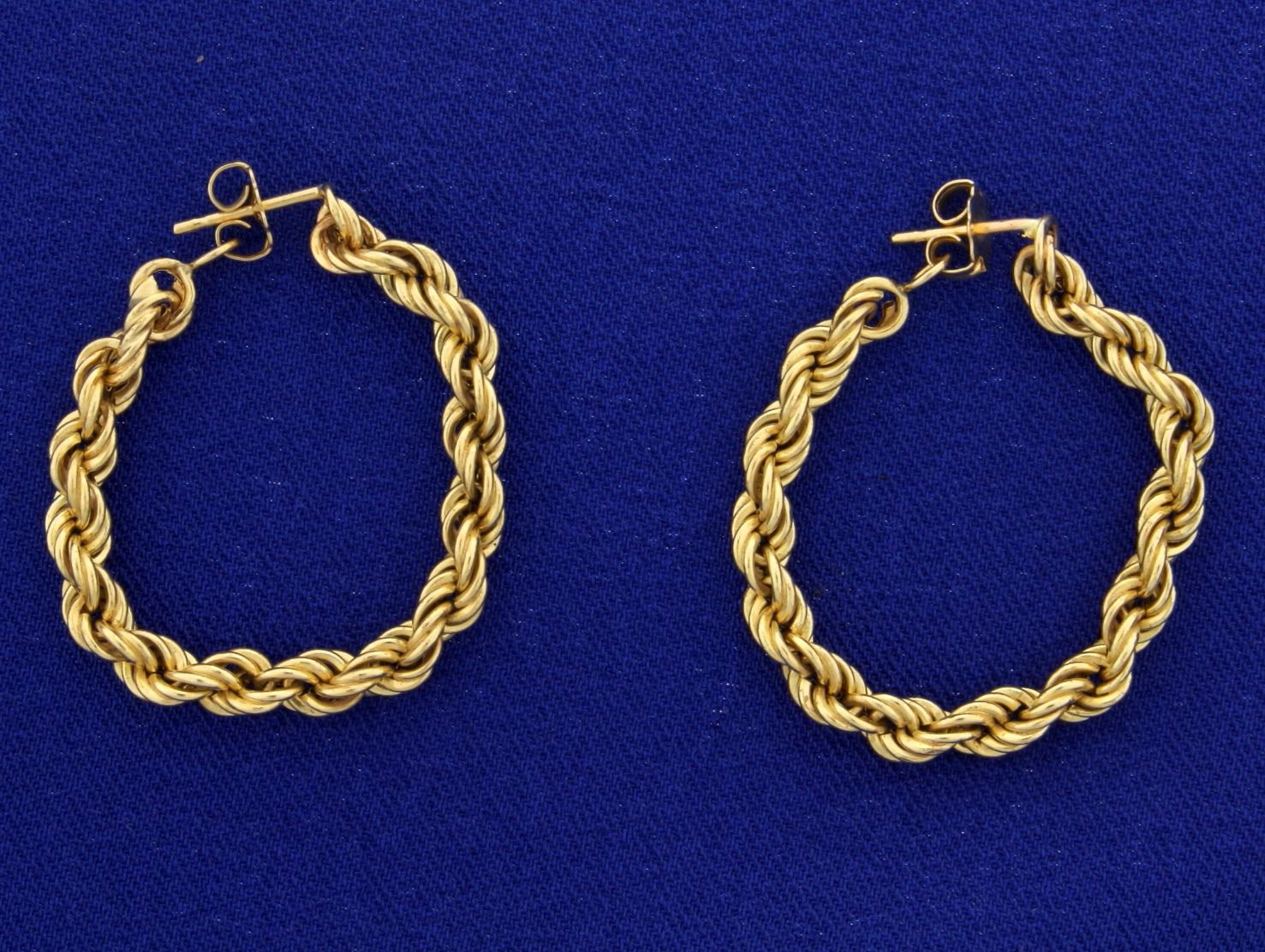 In 14k yellow gold. 1 1/2 inches long with friction backs. 3.7g.