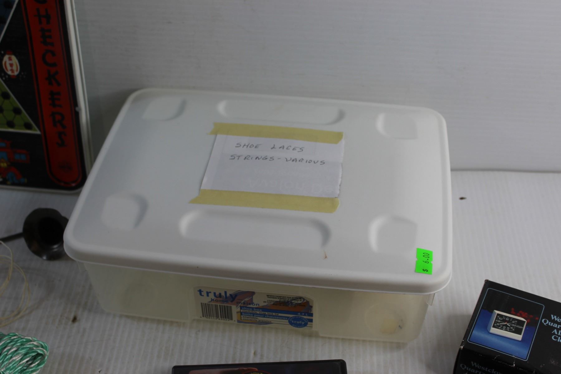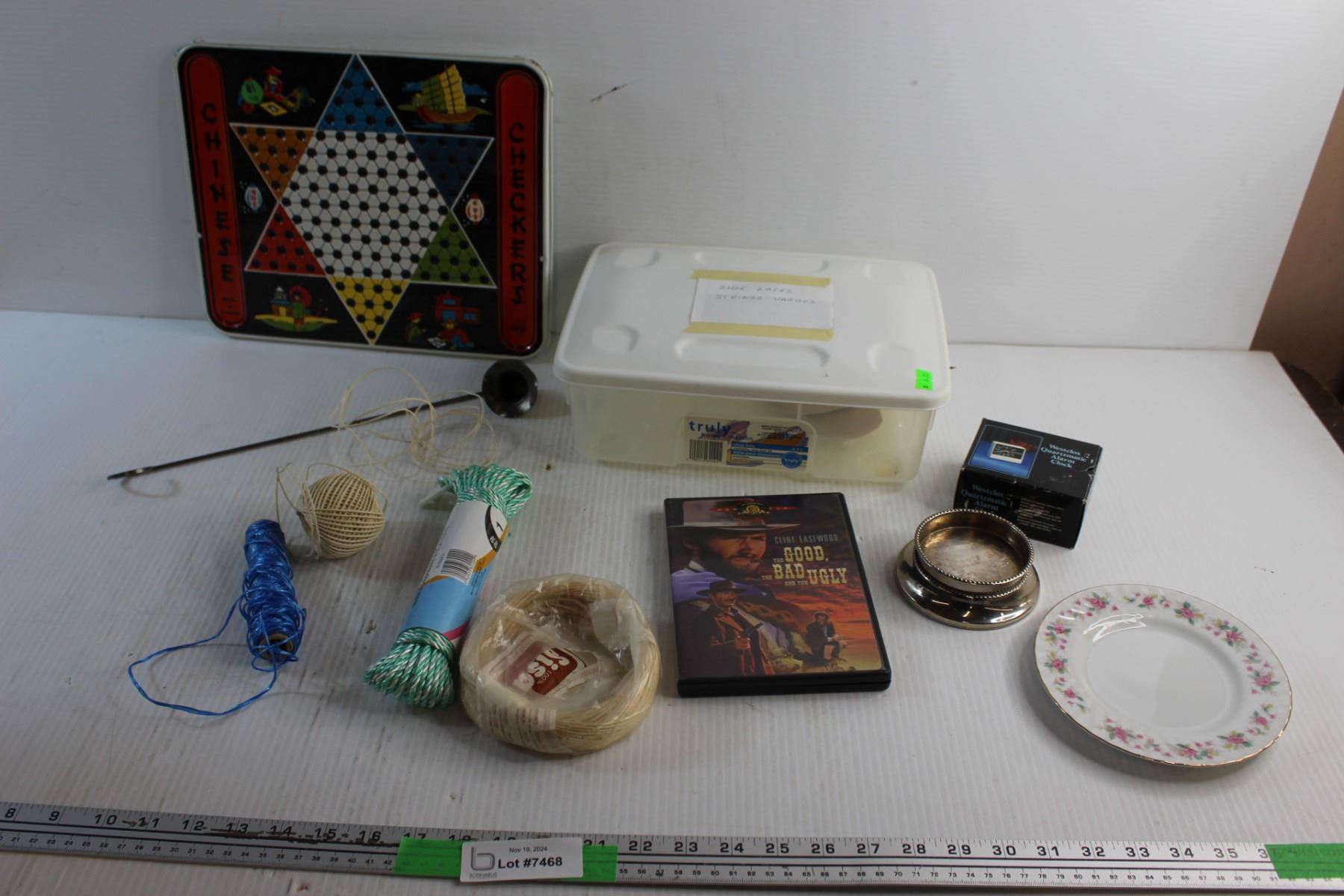 Ropes, Chinese Checkers Board, Plastic Container with Lid, Ceramic Plate and Misc.