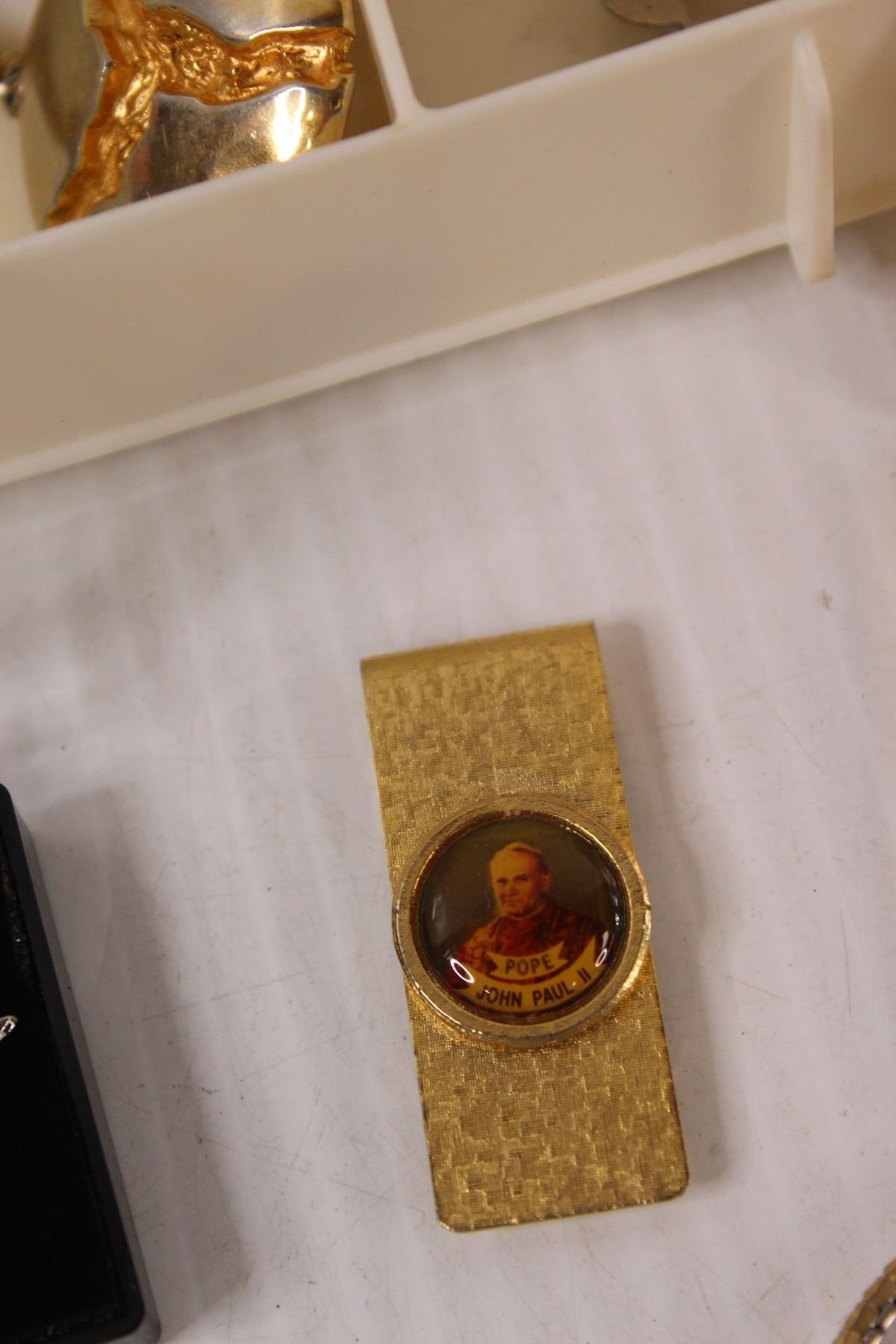 Rosary, Pope John Paul II Money Clasp, Watch, Misc. in Tray