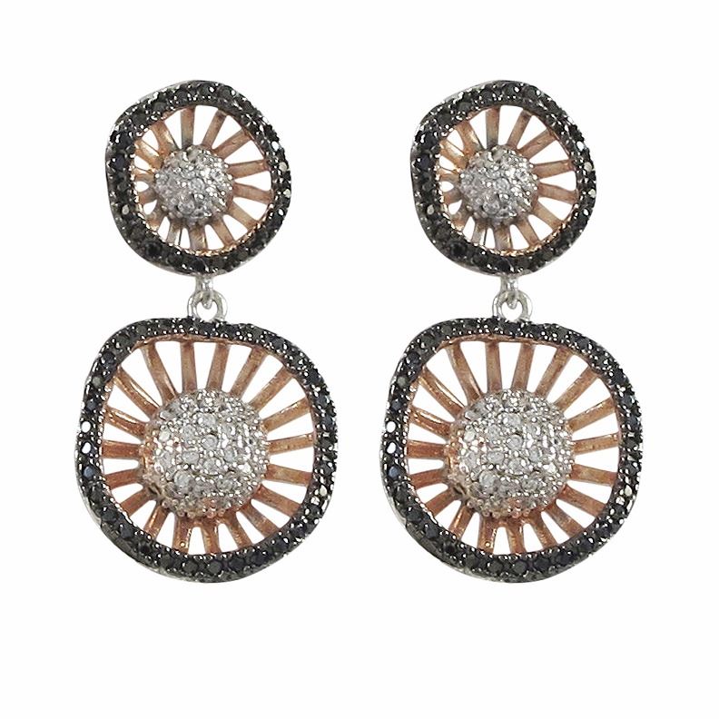 Rose & Black Over Sterling Silver Two Circle Post Earrings -1.16"