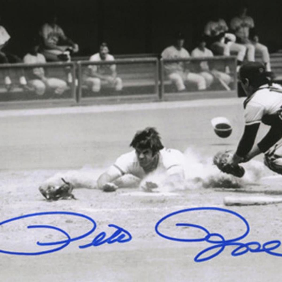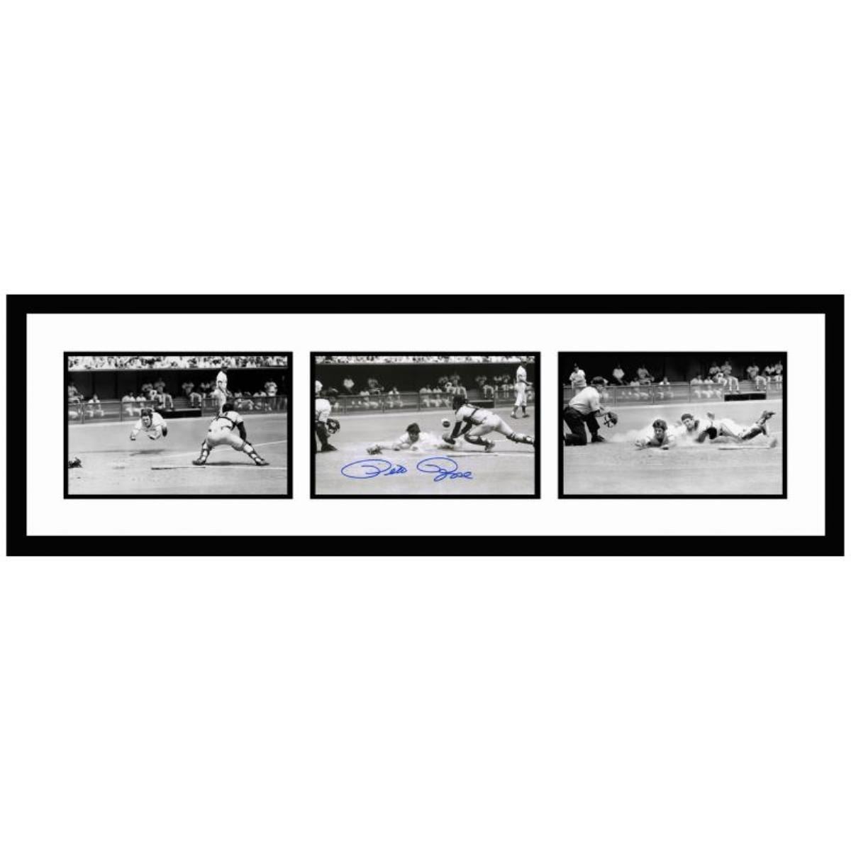 "Rose Diving Series" is set of archival photographs capturing perhaps, the greatest dive ever caught on film of Pete Rose. This photo series was taken on July 30, 1972 and is autographed by Pete Rose. Includes Certificate of Authenticity. This piece comes framed. Measures approx. 46" x 21" (frame), 40" x 15" (image).