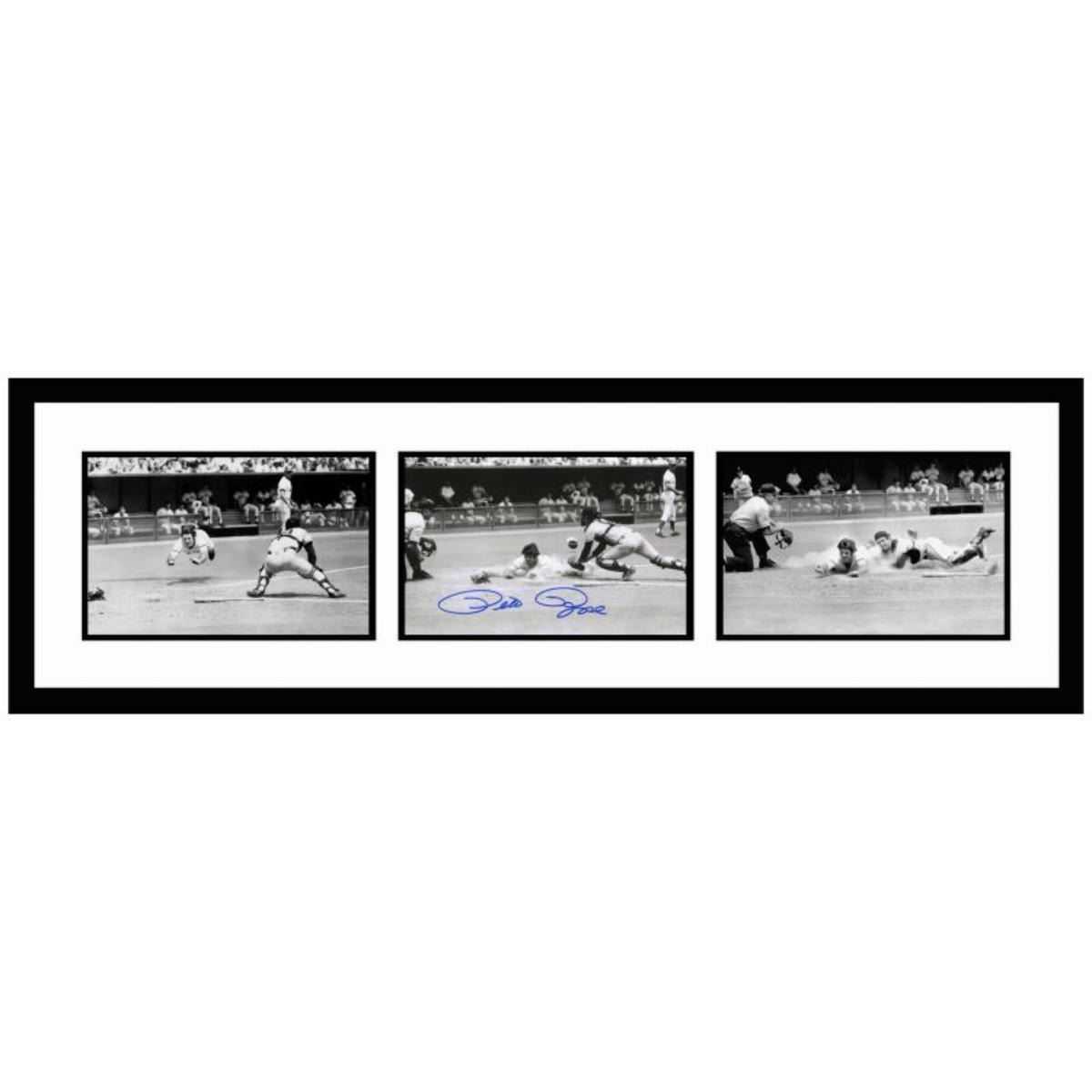 "Rose Diving Series" is set of archival photographs capturing perhaps, the greatest dive ever caught on film of Pete Rose. This photo series was taken on July 30, 1972 and is autographed by Pete Rose. Includes Certificate of Authenticity. This piece comes framed. Measures approx. 46" x 21" (frame), 40" x 15" (image). Reference #: 214054.