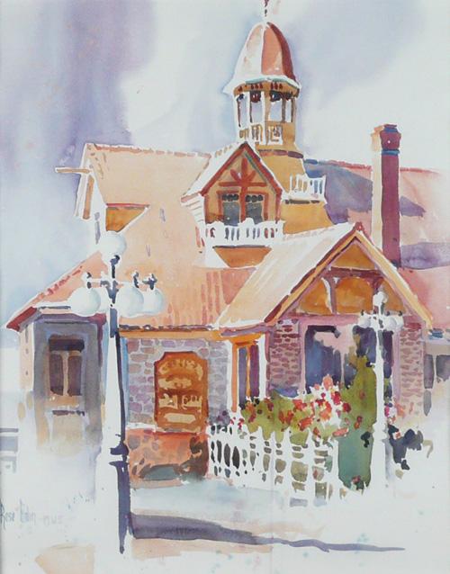 Rose Edin (20th Cent) MWS Watercolor "Giuseppes railroad station, Colorado Springs" Signed lower left 20" x 15"