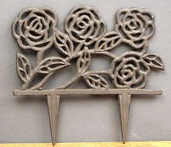 Rose Garden StakeMeasures: Cast iron rustic rose garden stakes are perfect to line your flower bed with. Measures 12.25"W x 11.5"H x .25"D.