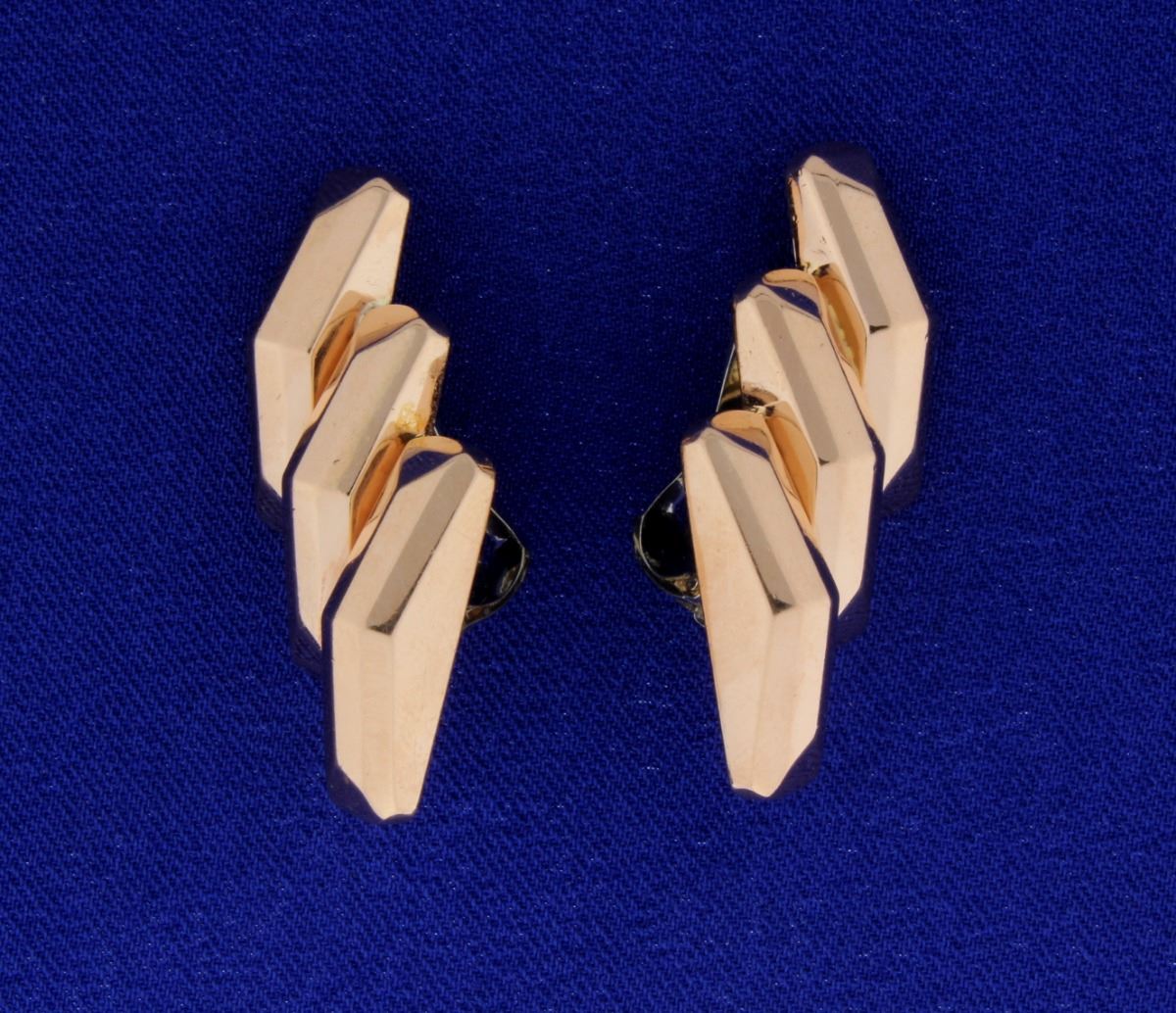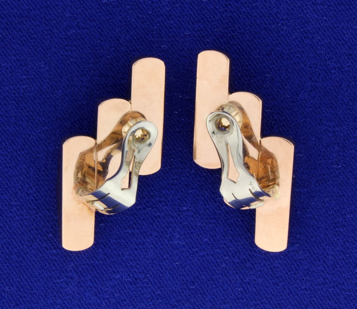 In 14K rose gold, this matches the necklace in previous lot and are 1 1/2 inches long. 14g