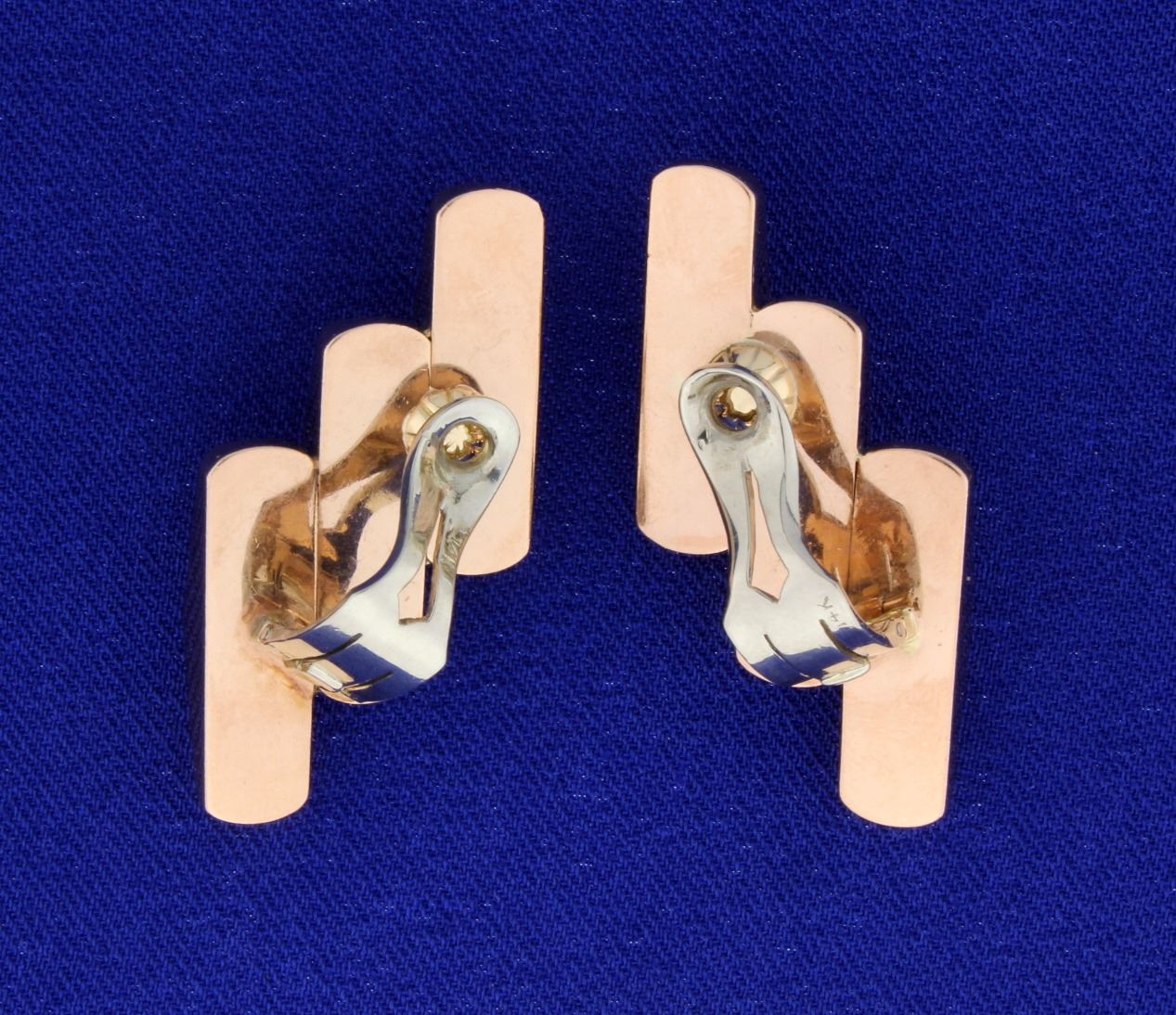 In 14K rose gold, this matches the necklace in previous lot and are 1 1/2 inches long. 14g