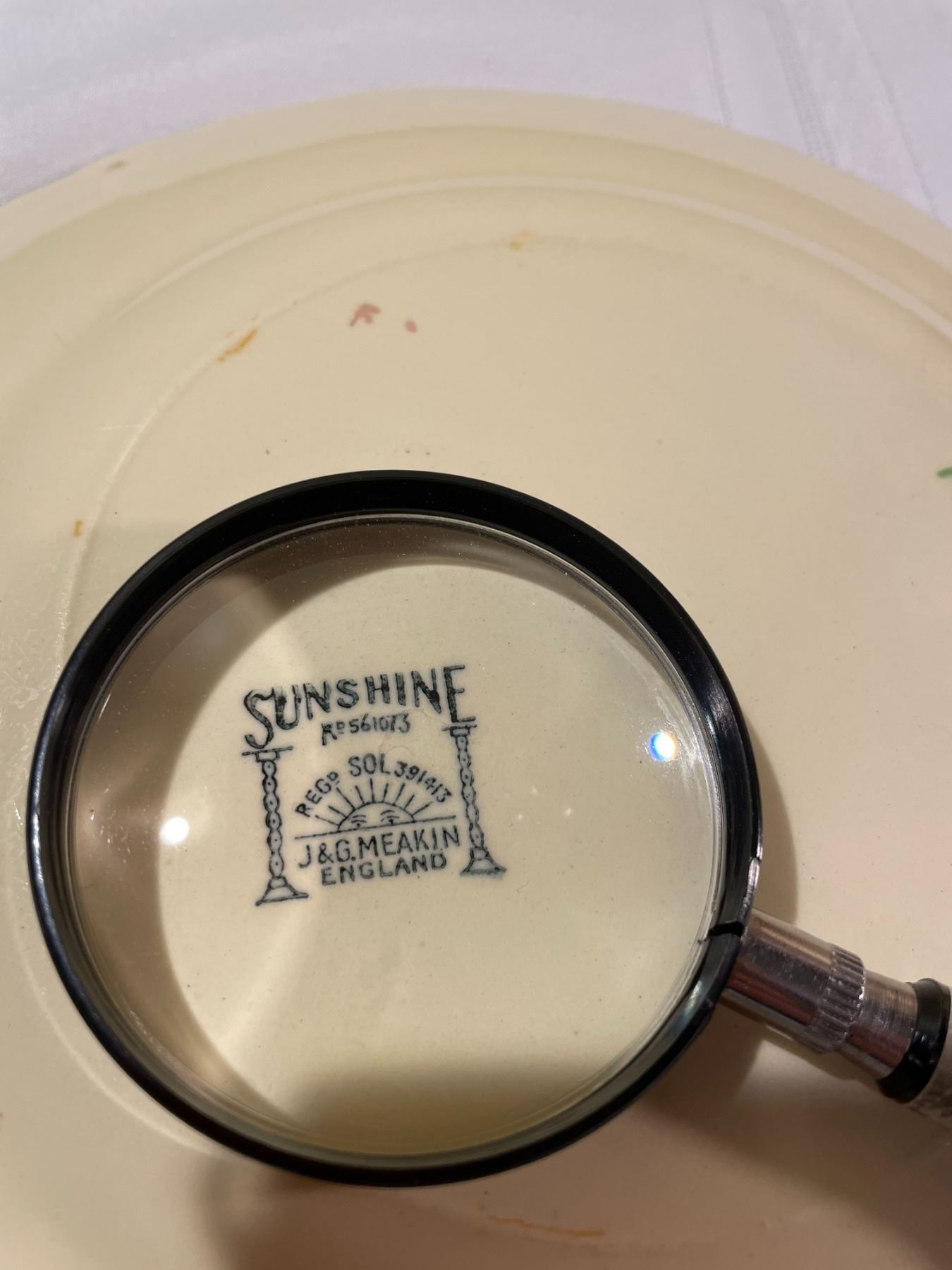 Rose Hip or Berry Pattery approx 1912 Gold Rimmed Cream Colored by Sunshine RO. 561073 Regd. SOL 391413- J+G Meak in - England