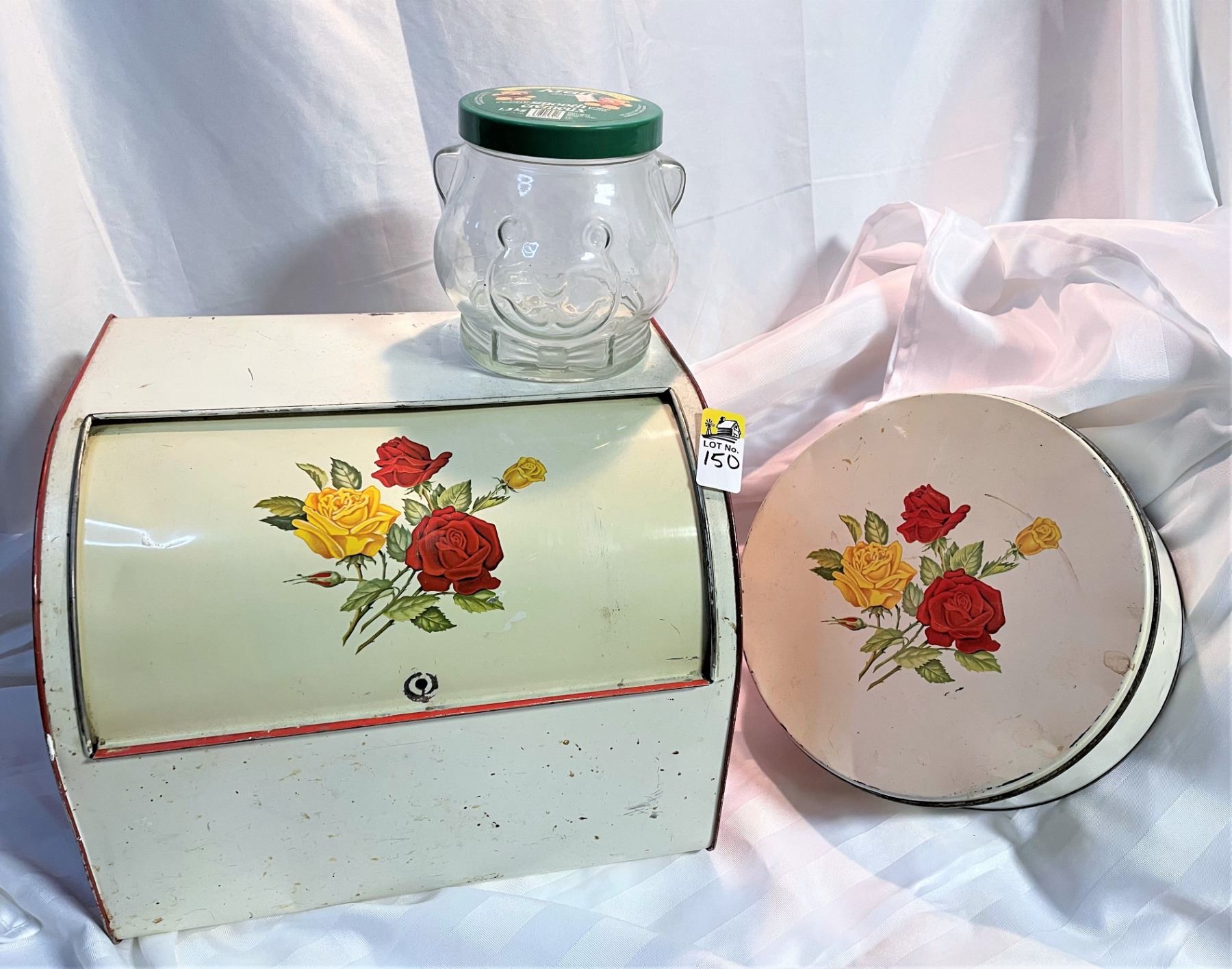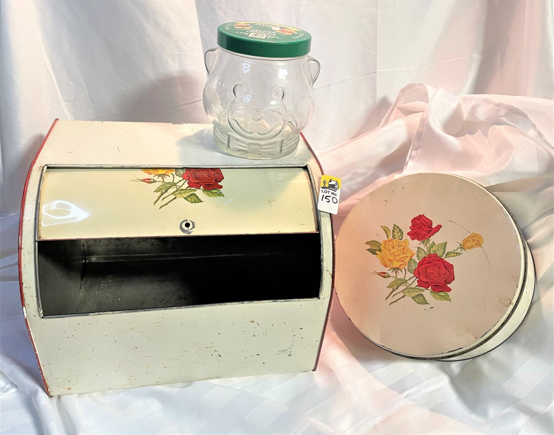 Rose Motif Bread Box, Tin and Peanut Butter Jar