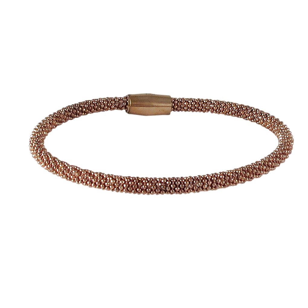 Rose Over Stainless Steel Mesh Magnet Bangle Bracelet- 7"