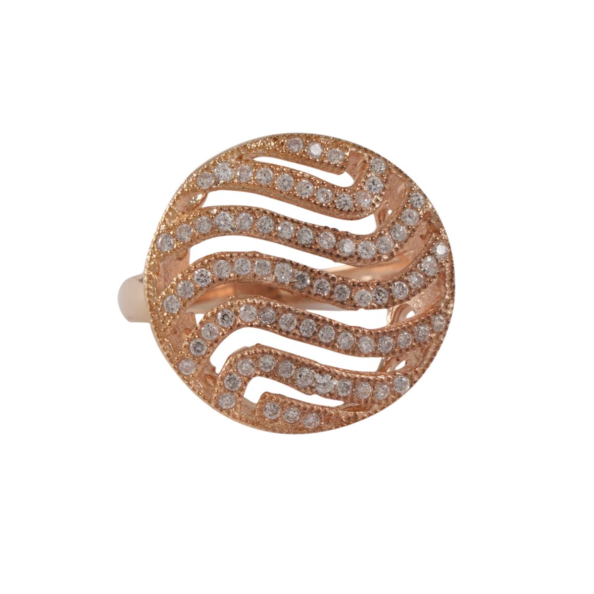 Rose Over Sterling Silver Ring, 20Mm Circle With Wave Design Covered In White Czs, Size 6