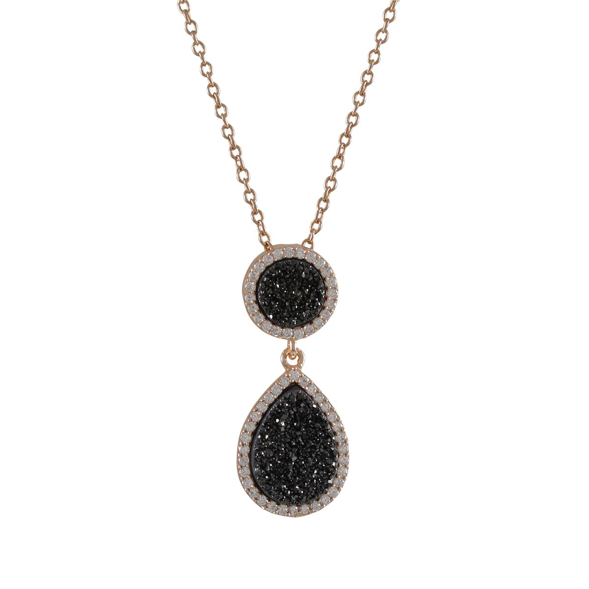 Rose Plated Sterling Silver, 11Mm Round Circle And 13.5X17.5Mm Teardrop, Grey Druzy Natural Stone With CZ Border, Pendant, 1.22"
