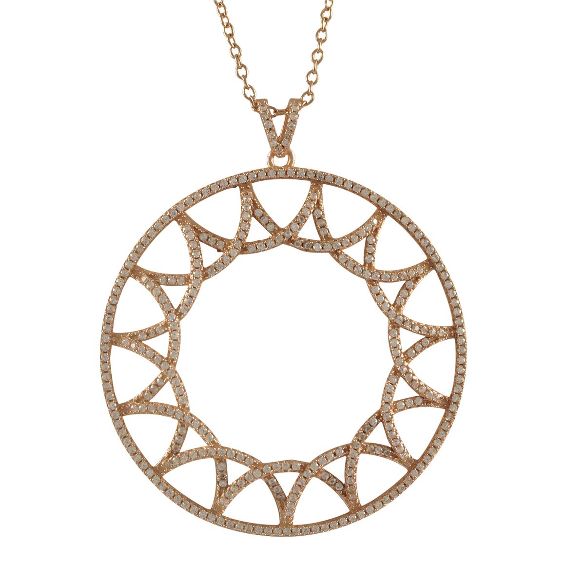 Rose Plated Sterling Silver, Open 45Mm Circle, Star Design CZ Pendant, 2.09"