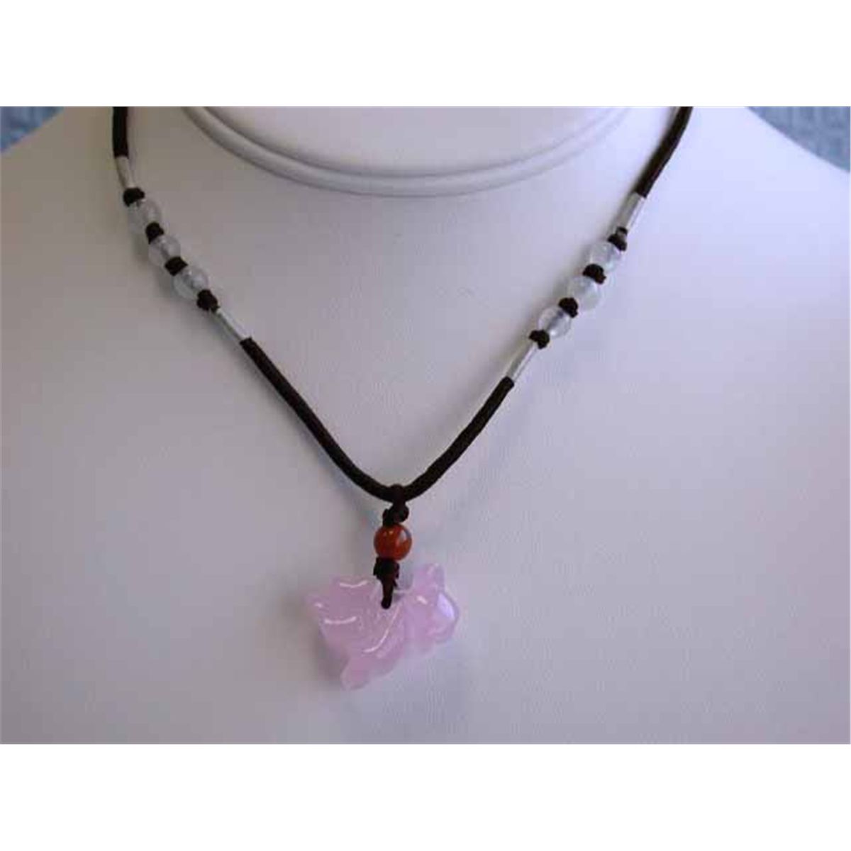 Rose Quartz Necklace w/ Silk Thread approximately 17 inches long adjustable