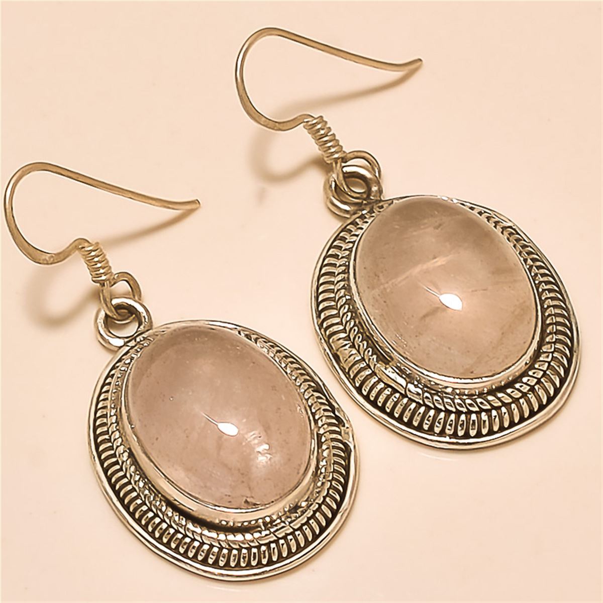 Rose Quartz Earring Solid Sterling Silver Length:1.5 inch Weight:14 gram #E-028