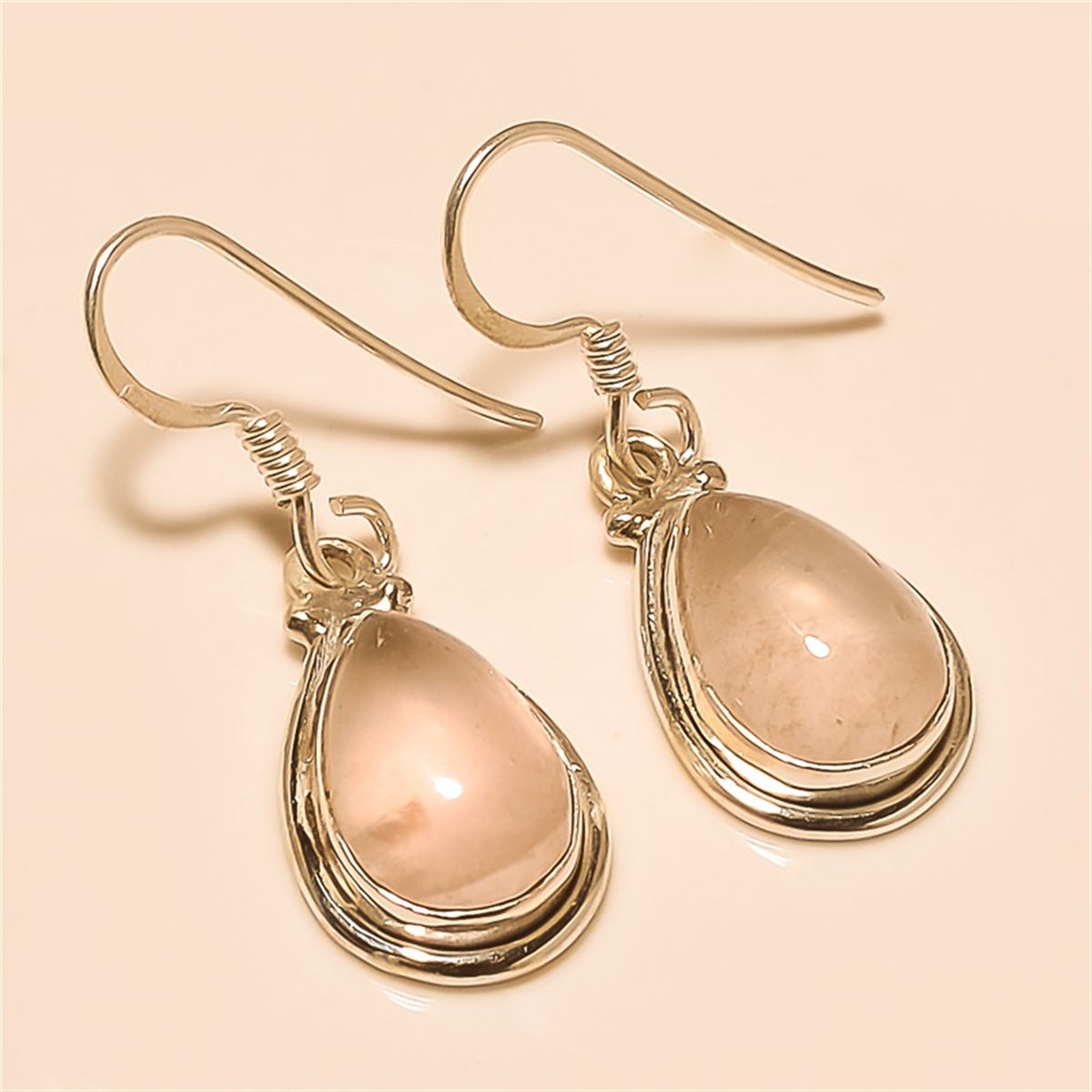 Rose Quartz Earring Solid Sterling Silver Length:0.75 inch Weight:5 gram #E-149