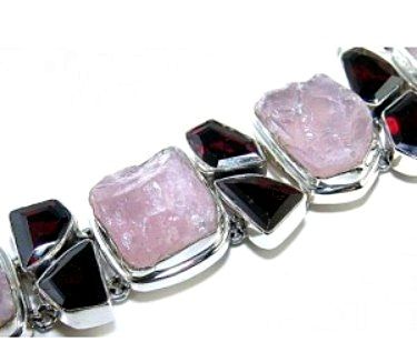 Silver & Rose Quartz & Garnet Bracelet. Allow 6 to 8 weeks for delivery.