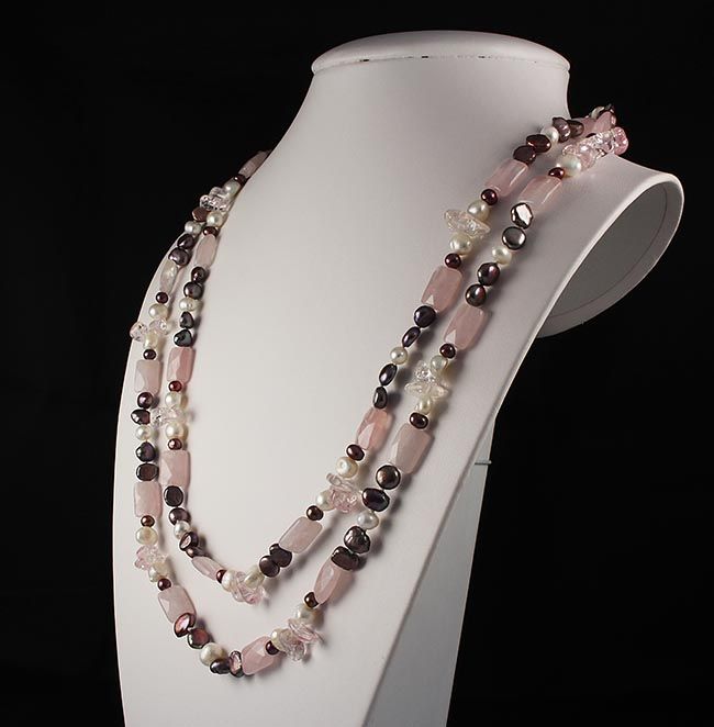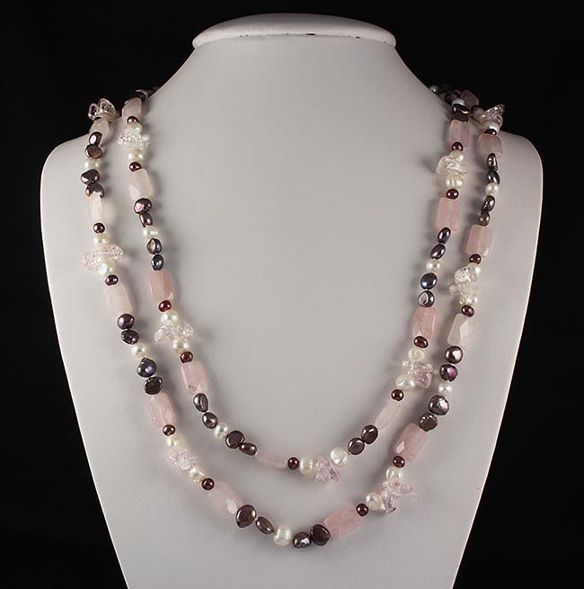 Rose Quartz Natural Stone Handknotted Necklace **|**|** 487.00CARAT Simple Long Hand-Knotted Pink Quartz Gemstone with Freshwater Pearl Necklace ; MSRP: $0