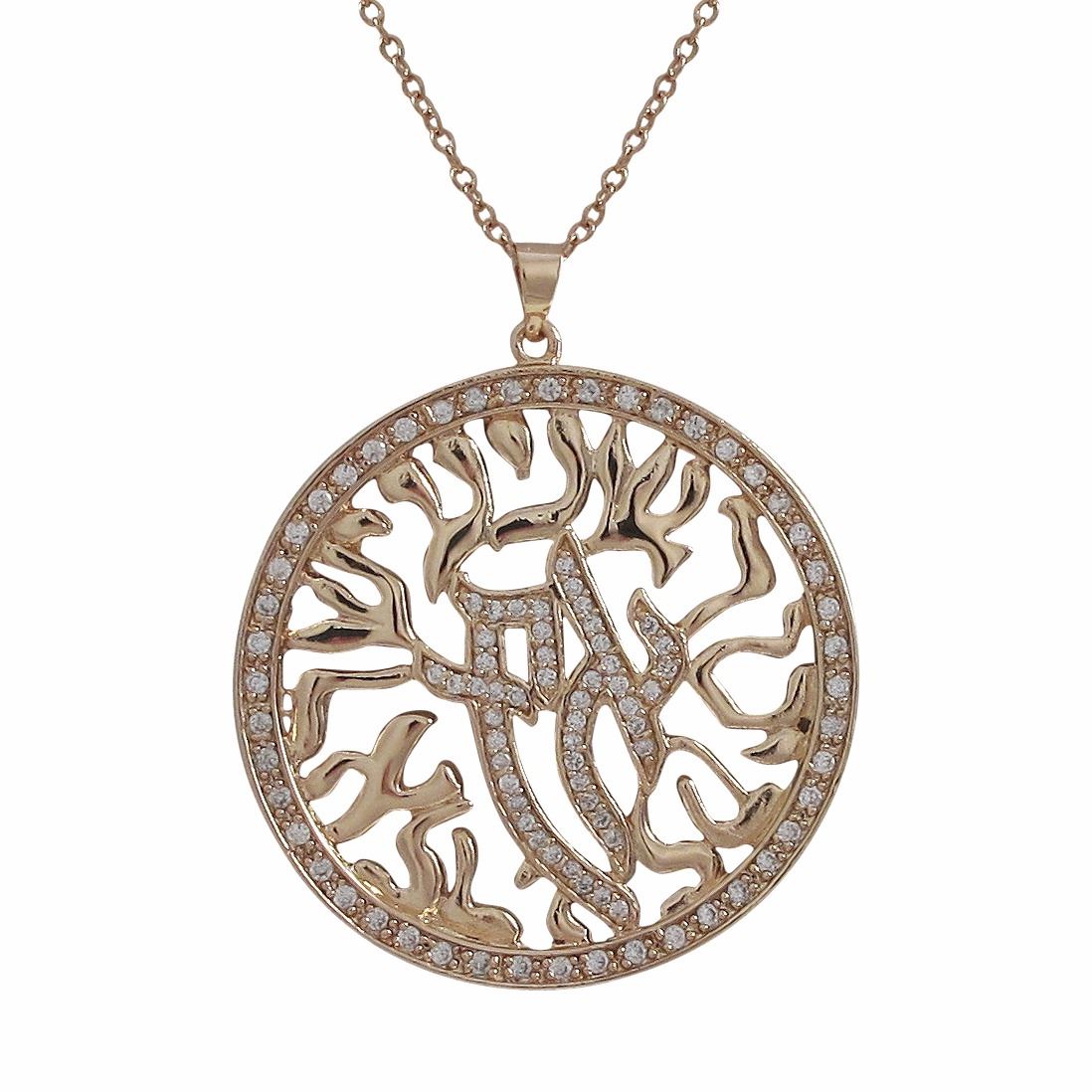 Rose Tone Brass CZ Shema Israel Echad Jewish Prayer 40Mm Open Circle Pendant- 1.87"