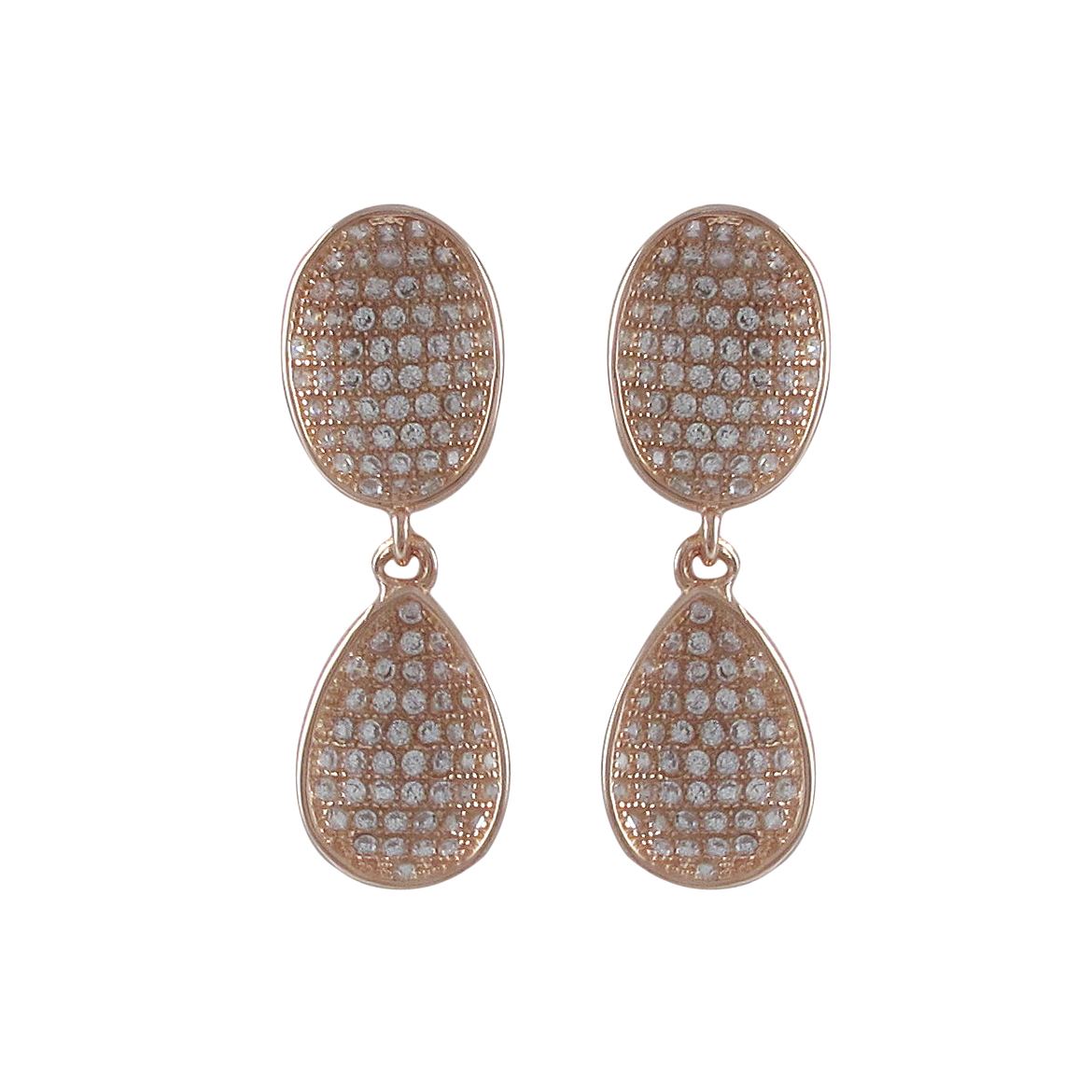 Rose Tone Sterling Silver CZ Ovals Post Earrings-1.02"