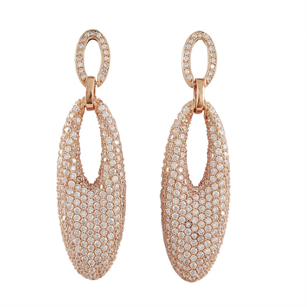 Rose Tone Sterling Silver With CZ, Oval Hanging On Post Earrings-55M Long