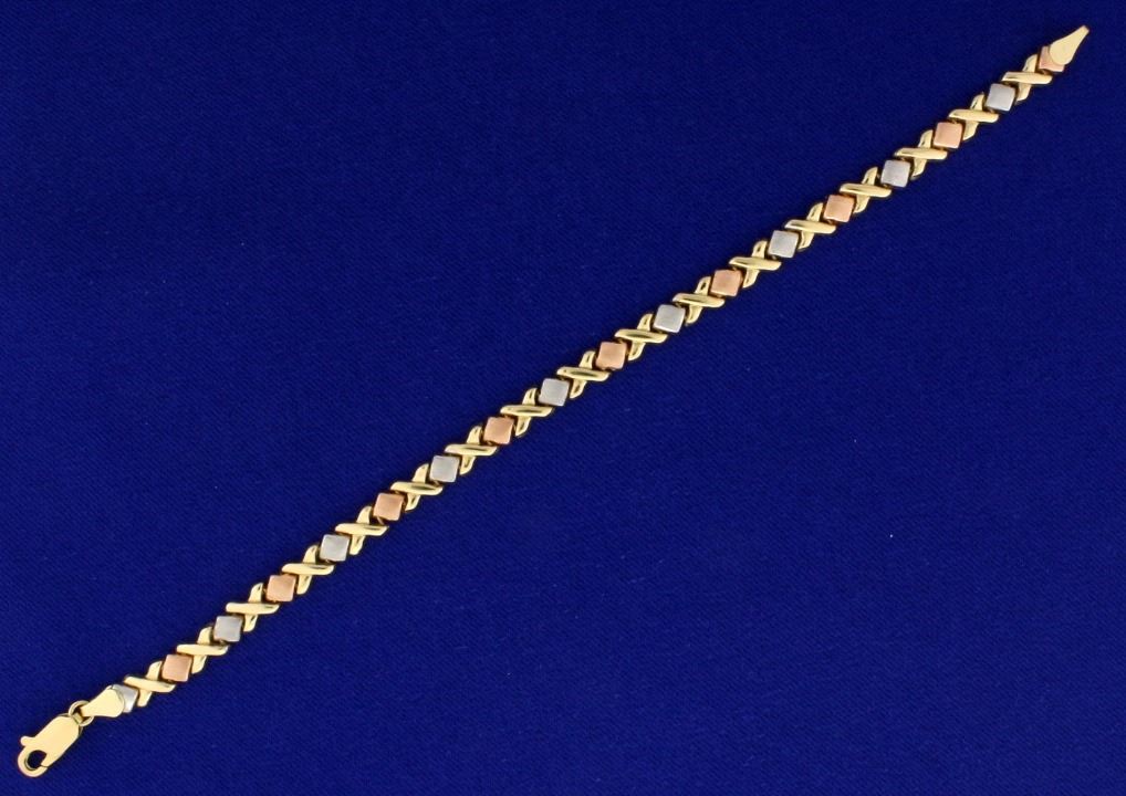 In 14k yellow, rose, and white gold. 7 inches long with lobster clasp. 5.1mm wide. 5.0g.