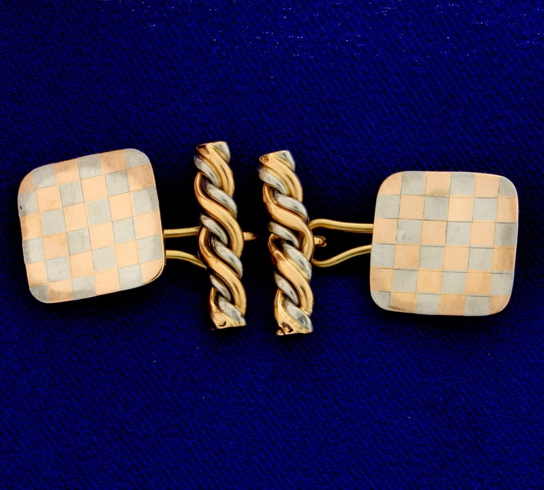 These 14K rose and white gold cufflinks are 1/2 inch 1/2 inch. 6.5g