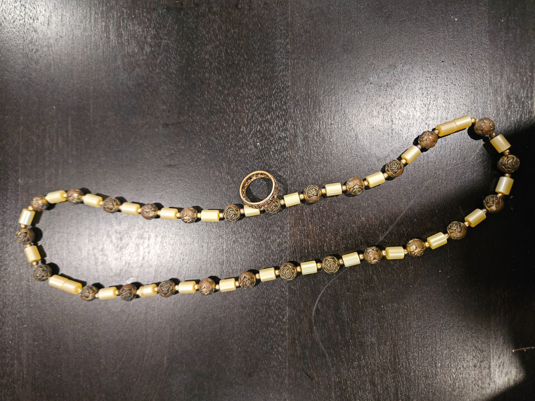 Rose bead necklace and ring