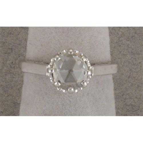 Pretty rose-cut diamond (measures 7MM, 1/3 carat weight) set in a mounting marked (not totally readable): _LA_ 18 ct.(new prongs). It is a size 6 1/2 and weighs 2.6 grams.