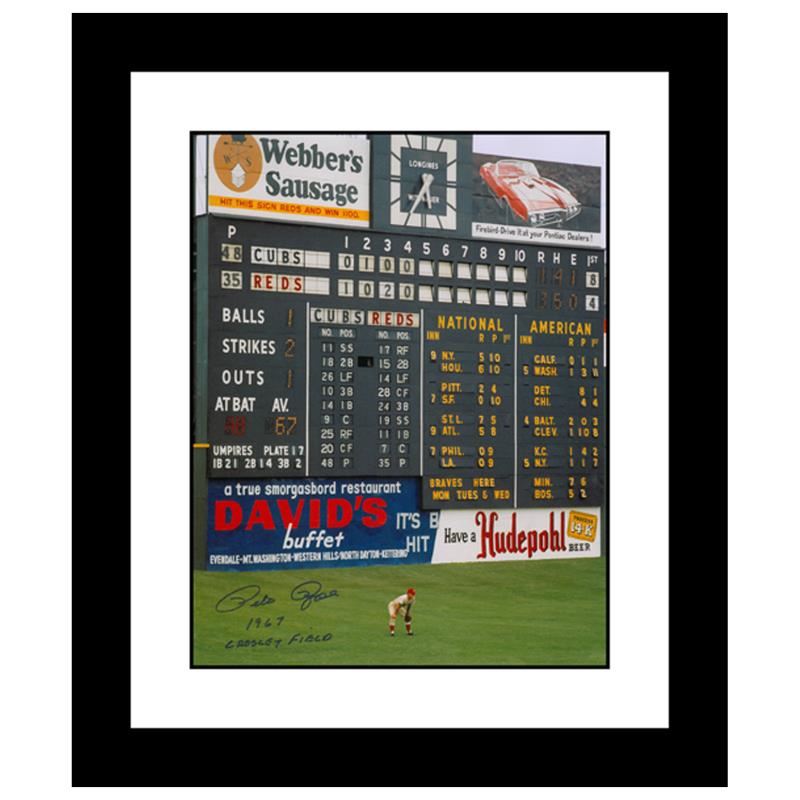 "Rose in Outfield at Crosley" is an archival photograph featuring Pete Rose taken by photographer Sarge Marsh circa 1967. This photo is autographed boldly by Pete Rose. This piece comes framed. Includes Certificate of Authenticity. Measures approx. 22" x 26" (frame), 16" x 20" (image).