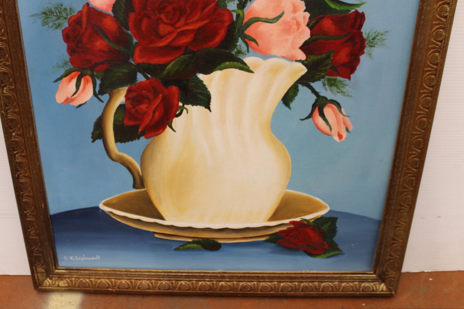 *Rose in Vase Painting (Frame Not Attached Well) (23" x 27")