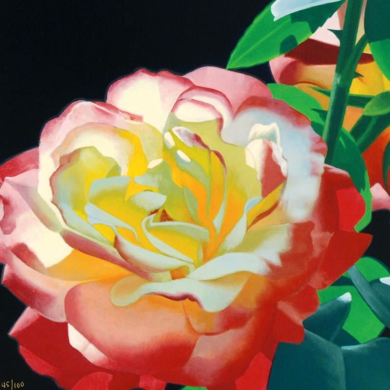 "Rose in the Leaves" is a limited edition giclee on deckle-edge paper by Brian Davis, numbered and hand signed by the artist. Includes Certificate of Authenticity! Measures approx. 20" x 16" (image).